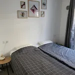 この1のベッドル-ムアパ-トメントには電子レンジ,冷蔵庫とキッチン用品を設けています. 1のバスル-ムを利用できます.
